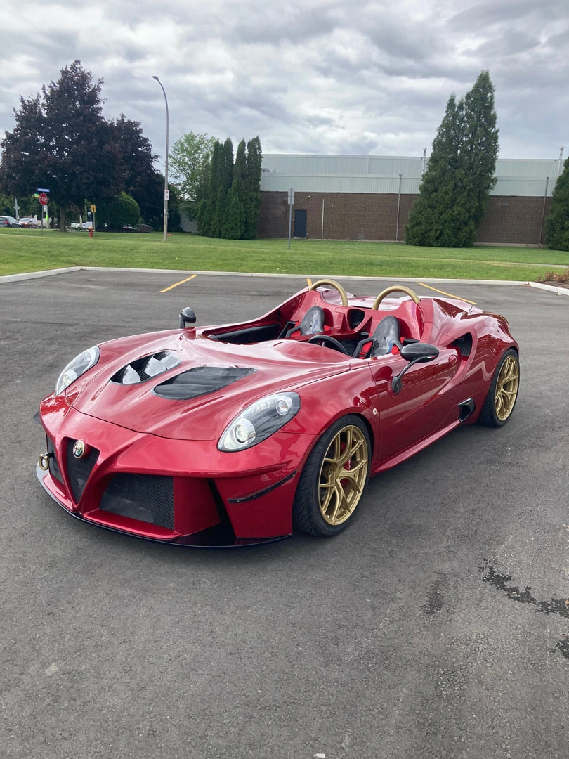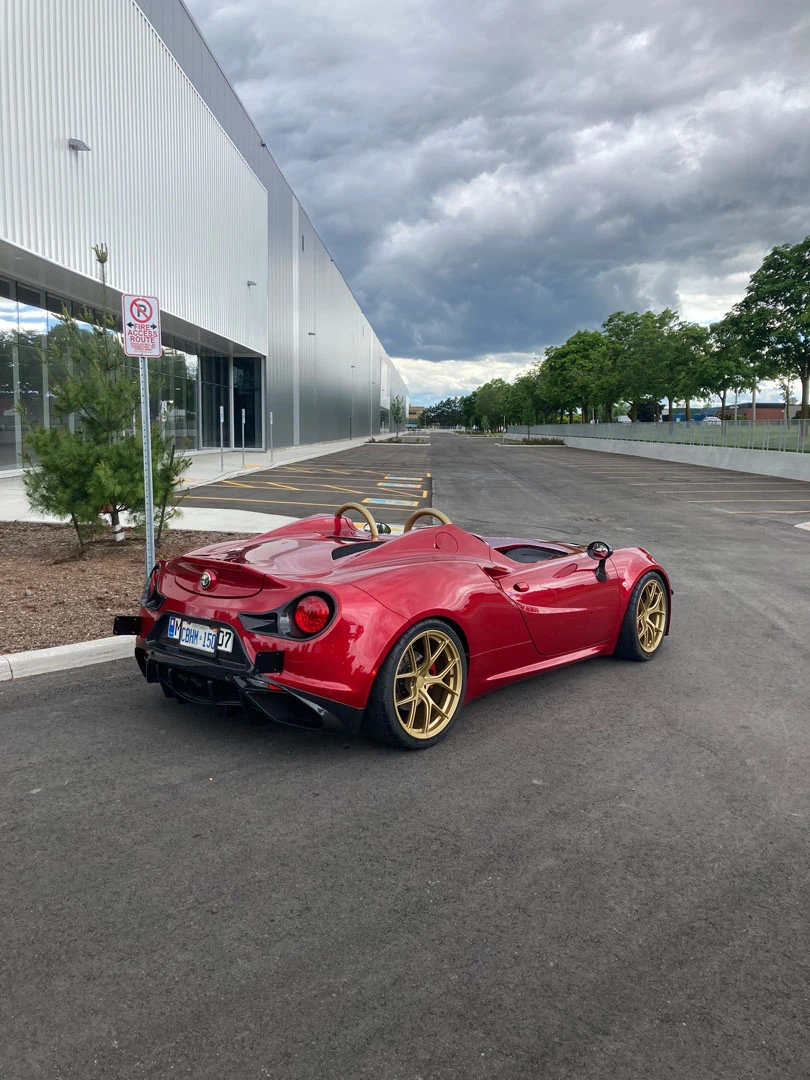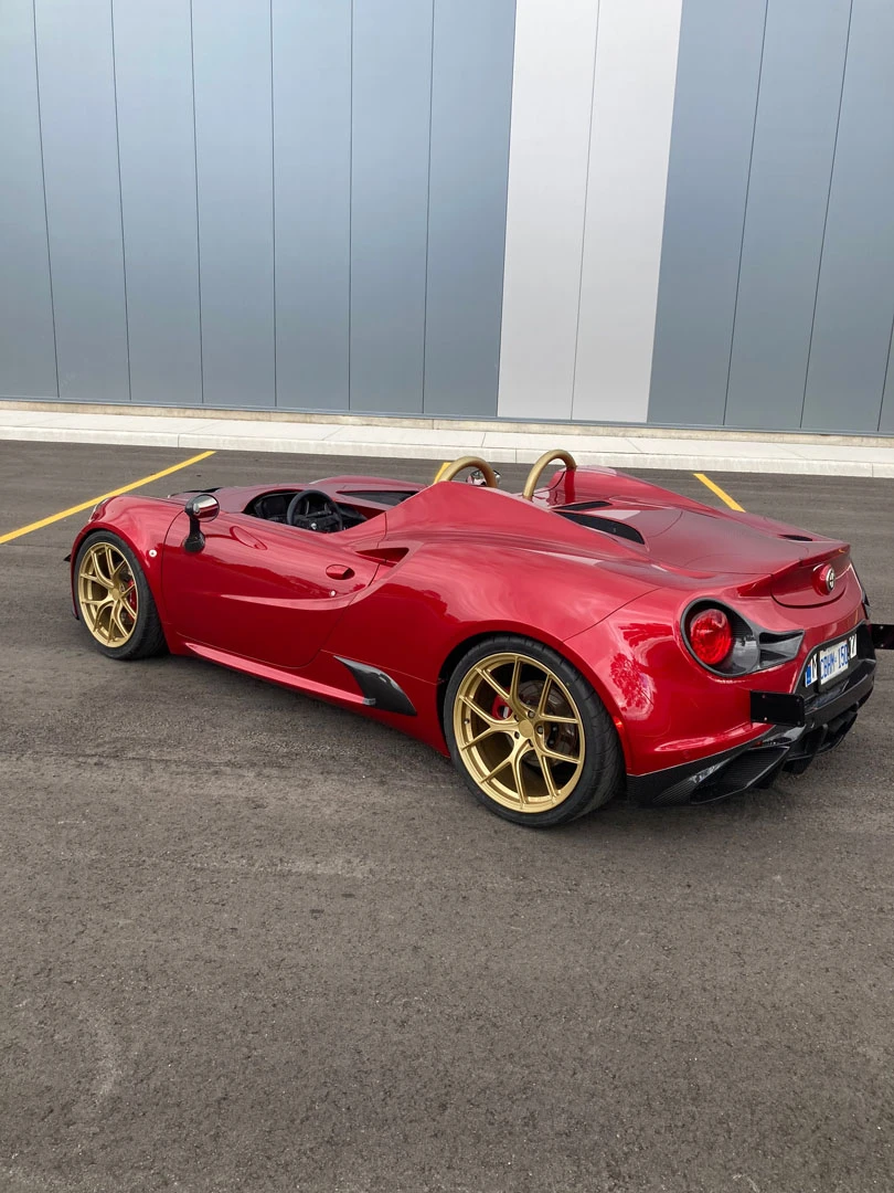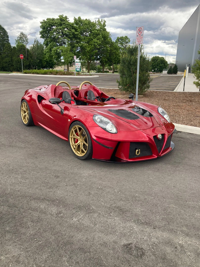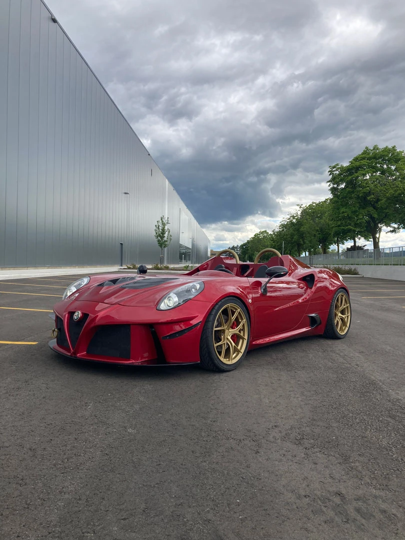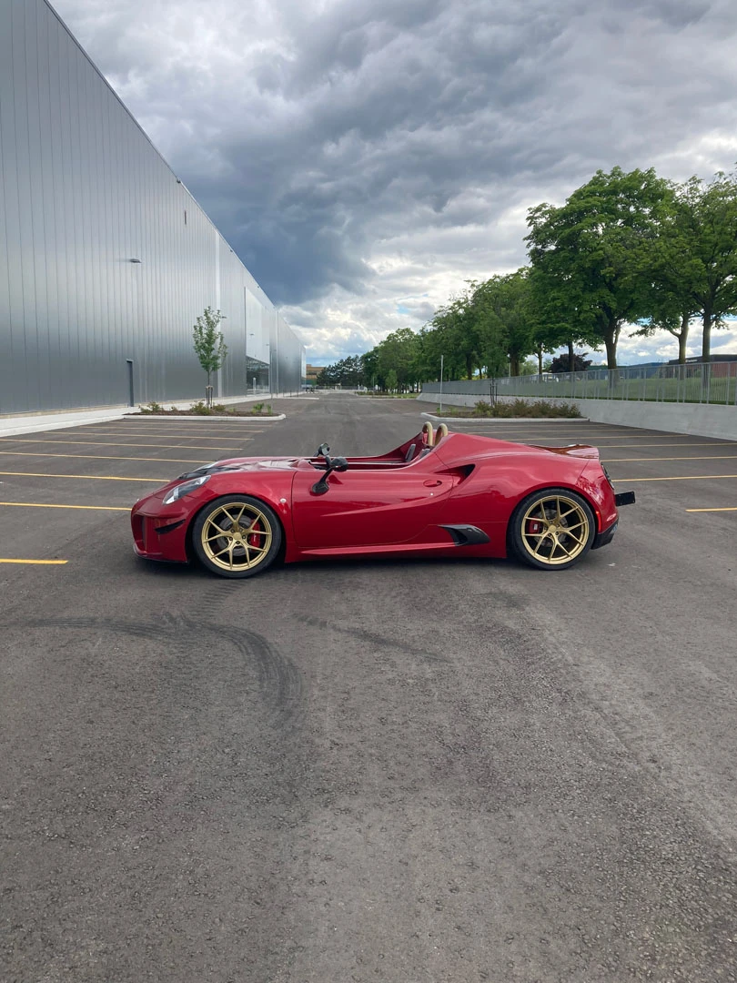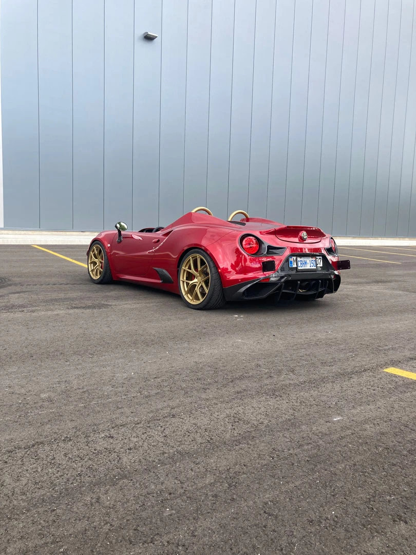 Inspired by open-cockpit concepts like the Ferrari Monza, we embraced the challenge of transforming this Alfa Romeo into a sleek, custom speedster. The first step was to strip away the remaining roof structure, creating a blank canvas for our team. From there, we meticulously remodeled the surrounding body, balancing design freedom with structural integrity. Every line and curve was shaped to feel as though it could have been crafted by Alfa Romeo themselves, maintaining an authentic, OEM-inspired aesthetic. Finished in the iconic Alfa Romeo Rosso Competizione, this one-off speedster stands out as a true head-turner.